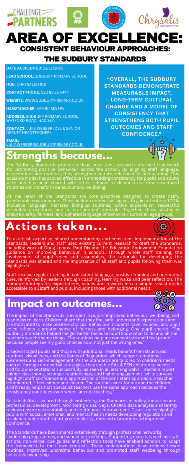 Challenge Partners Accredited Areas of Excellence at Sudbury Primary School